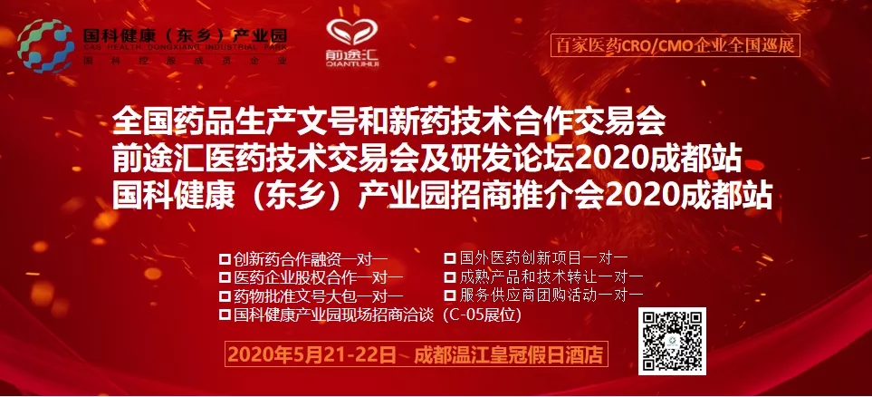 國科健康(東鄉(xiāng))產(chǎn)業(yè)園與醫(yī)藥前途匯聯(lián)合舉辦的“全國藥品生產(chǎn)文號和新藥技術(shù)合作交易會(huì)、前途匯醫(yī)藥技術(shù)交易會(huì)及研發(fā)論壇2020成都站、國科健康(東鄉(xiāng))產(chǎn)業(yè)園招商推介會(huì)2020成都站”將于2020年5月21——22日在成都溫江假日酒店開幕,誠邀醫(yī)藥、醫(yī)療、大健康行業(yè)企業(yè)共襄盛舉!